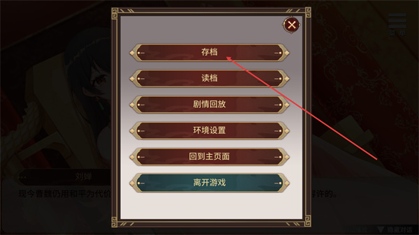 4、这是游戏的菜单界面,包含存档等功能选项,点击存档按钮,即可保存当前的游戏进度以便后续继续游玩。