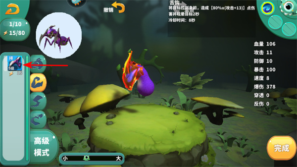 4、选择不同的生物部件如蚂蚁的部件,可更换生物的外观和能力,这是丰富游戏体验的关键策略,根据战斗需求和部件特色进行挑选。