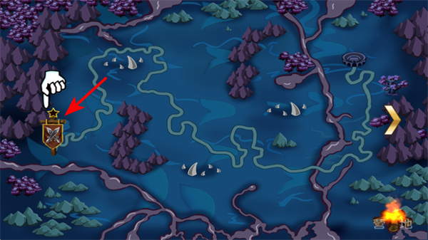 1、点击地图上的标识区域,这是进入战斗场景的关键操作,点击后可从地图界面切换至对应的战斗关卡,开启怪物挑战流程。