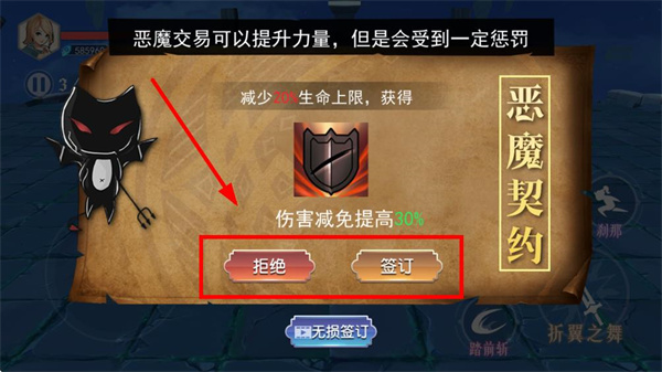 5、闯关过程中遇到恶魔契约选项,可选择签订或选择拒绝,根据自身战斗策略进行选择。