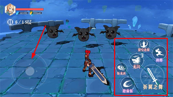 2、左侧虚拟摇杆控制角色移动,靠近敌人后点击右侧技能按钮释放技能攻击。