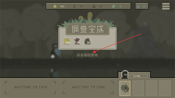 4、调查完成后可获得对应资源,按提示点击返回营地即可回到主界面,结束本次任务流程。