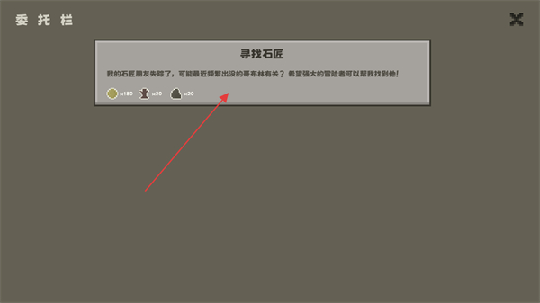2、委托栏中显示寻找石匠任务,石匠失踪或与哥布林有关,完成该任务可获得对应的资源奖励。