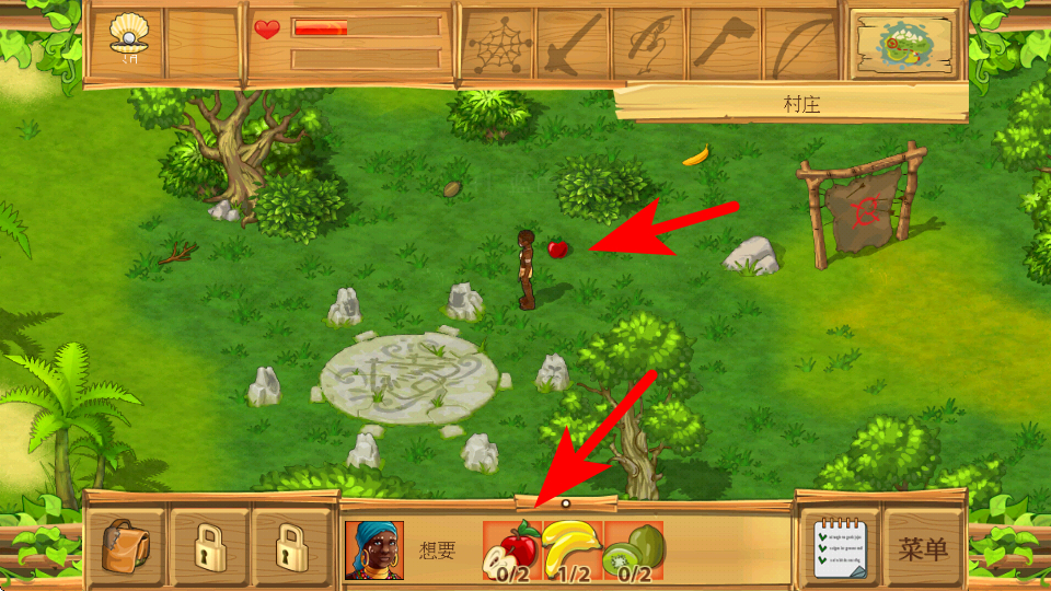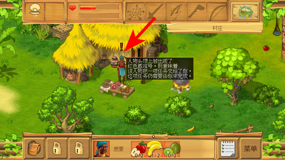 4、在场景中,点击箭头标注的物品,可收集对应的资源,这是完成任务的必要操作,按提示获取资源即可推进进度。