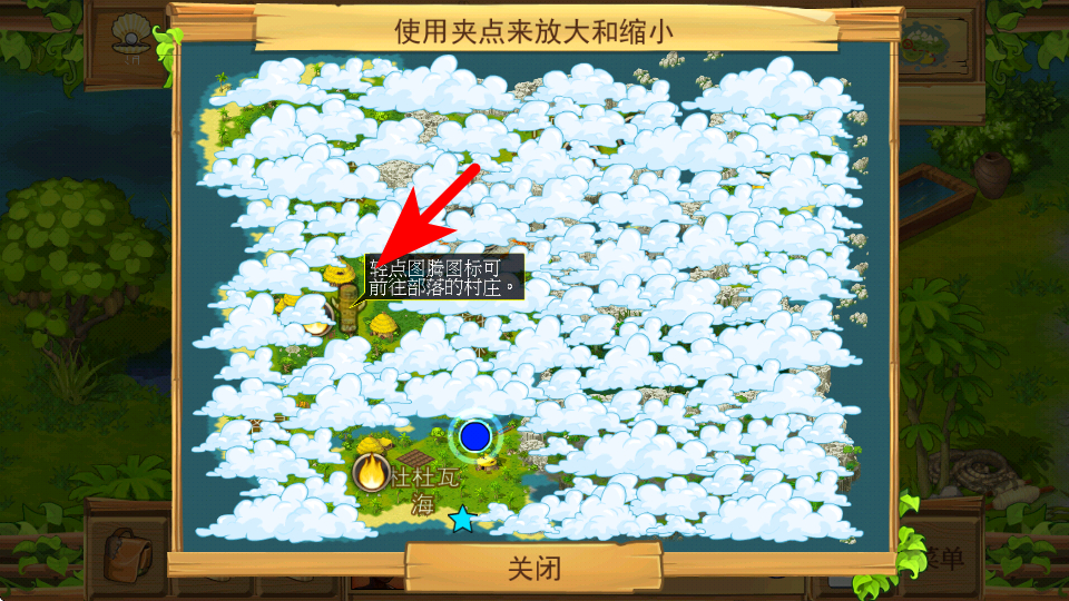 2、在地图界面中,点击箭头指向的村庄图标,前往对应的村庄区域,这是推进任务的基础操作,按提示选择地点。