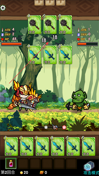 以三张卡牌点数比拼为核心对战机制,选择卡牌与怪物展开对决,获胜方触发攻击,规则简洁易懂,同时需根据怪物情况灵活选卡。