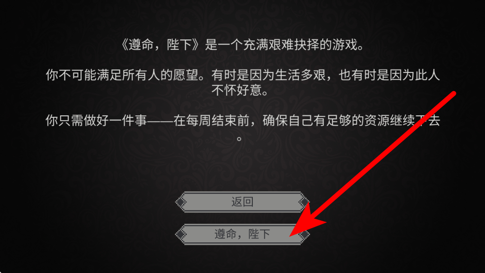 1、进入应用后,会看到带有新游戏等选项的界面,点击新游戏,随后在出现的提示界面中,点击遵命,陛下,正式开启统治的旅程。