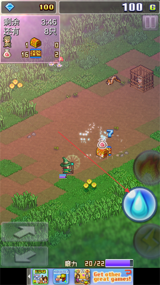 4、点击右下角的魔法属性调整角色的攻击魔法方式,击败的怪物会掉落宝箱和经验等物资。