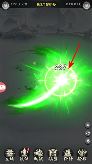 4、战斗中红色箭头指向的数值是当前攻击伤害,技能会自动释放,可等待战斗结算获取奖励。