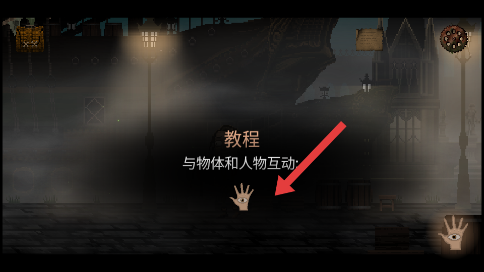 1、先跟随教程指引,点击带有眼睛的手形图标,练习与场景中的物体和人物互动,熟悉交互操作逻辑,这是推进剧情的基础。