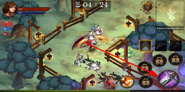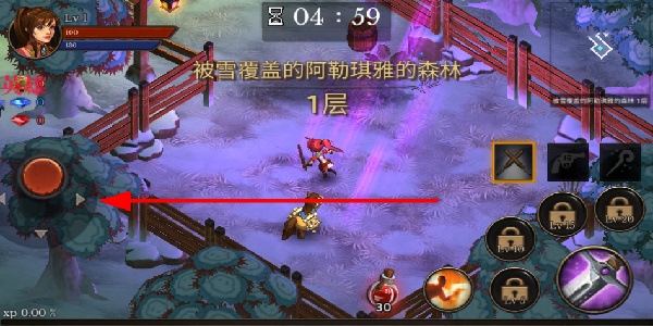 1、通过摇杆移动,在地牢场景中操控角色行动,探索不同区域,寻找怪物和道具,推进地牢冒险进程。