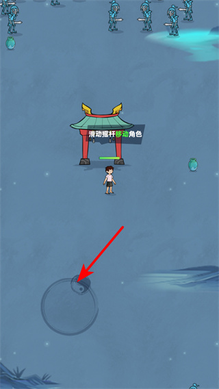 2、进入场景后,滑动红色箭头指向的摇杆,可控制角色移动,按提示操作能让角色靠近目标区域。