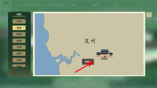 3、选择芙蕖山等具体地点,点击进入该区域,可开展资源收集、任务触发等活动,推动游戏剧情发展。