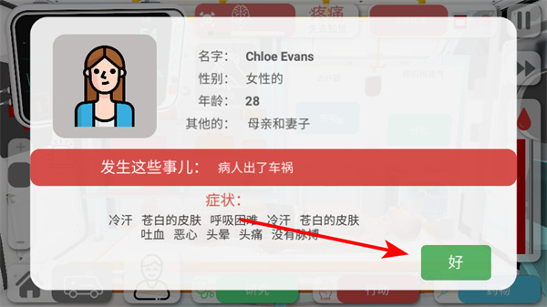1、游戏中查看病人信息后,点击好可进入治疗环节,这是开启医疗操作的关键步骤,需及时确认病人状况。