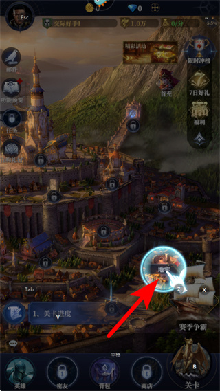 3、点击通关按钮进入关卡,这是推进游戏进度的核心操作,进入关卡后可体验战斗、解谜等玩法,获取对应的奖励与成长资源。