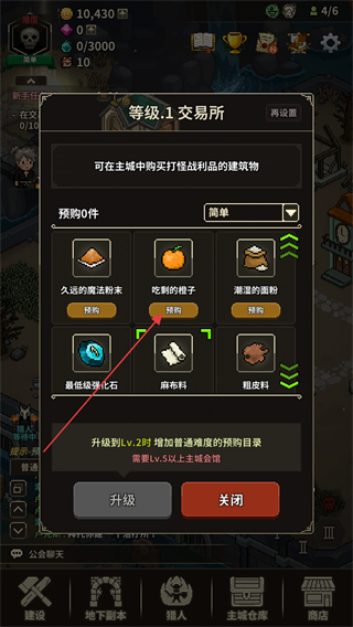 3、在城镇中的交易所中可以预约购买物品,需要预付金币后直接购买。