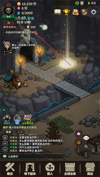 1、点击左上角的新手任务可以查看当前需要完成的任务信息,并且下方的镇长会给予提示。