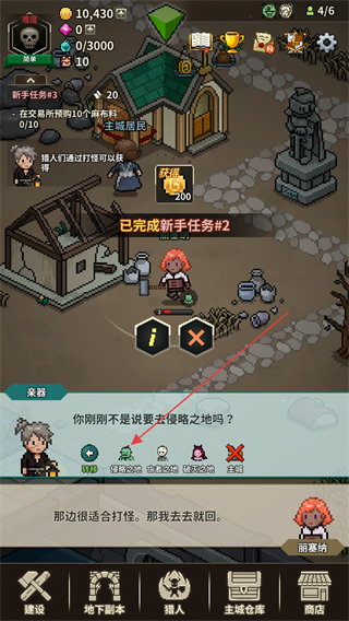 2、点击城镇中的猎人可以进行对话,点击下方的选项选择交谈内容。