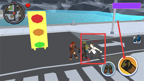 4、遇到其他角色时,点击右侧攻击按钮互动,击败后获取额外物资,同时保留自身血量。