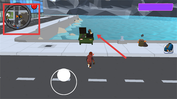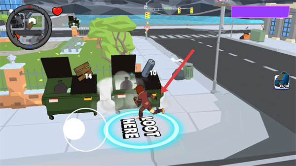 1、进入游戏后,查看左侧地图定位资源点,操控角色移动到垃圾桶旁,点击LOOT按钮搜刮物资。