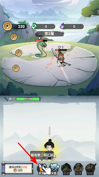 提供多种外观酷炫、属性各异的剑器供锻造,每把剑都有专属buff与大招,例如部分剑器自带“群攻AOE”“暴击加成”等效果,打造过程充满期待感。
