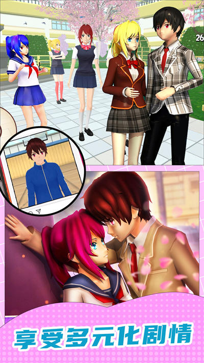 玩家可以邂逅自己的女友/男友,将会带来更多贴心的恋爱过程,还可以体验完整的游戏剧情,更多校园生活会带来更加真实的体验,超多的游戏场景可以自由的探索切换,带来更多的元素。
