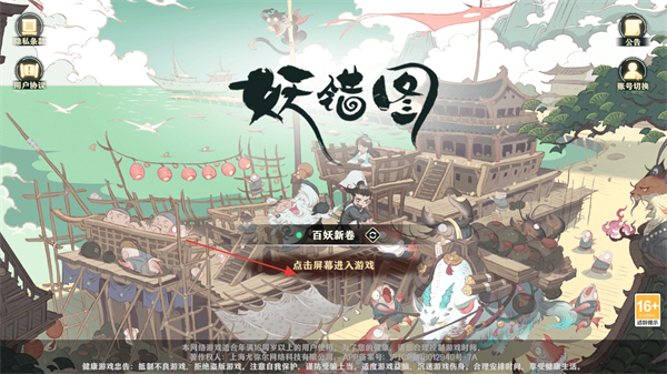 1、打开妖错图游戏主页,点击屏幕任意位置进入游戏。