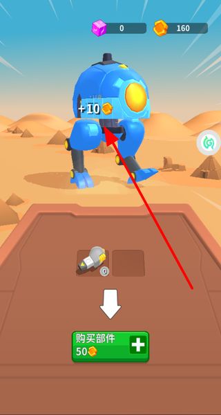 1、点击获取金币资源,购买机甲部件,积累资源用于机甲的升级和装备,推进机甲的战力提升。
