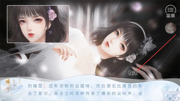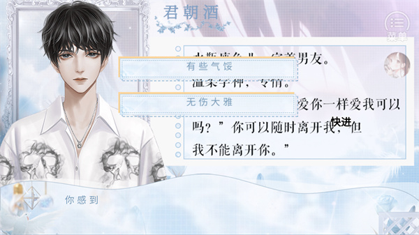 3、这是游戏的剧情展示界面,界面显示剧情文本内容,长按屏幕可以进入快进模式,加快剧情的推进速度,快速浏览当前的剧情内容。