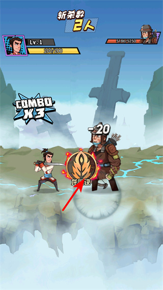 4、操控角色向敌人移动并发动攻击,连续攻击可打出连击combo,高效消灭敌人,积累等级。