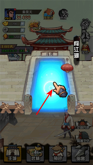 2、点击闯江湖入口,可进入江湖冒险场景,开启战斗和任务挑战,推进游戏剧情发展。