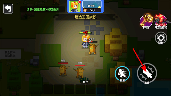 3、遇到敌人时紧跟红色箭头指引点击攻击按钮,可操控角色发起攻击击败敌人,这是完成目标重要操作。