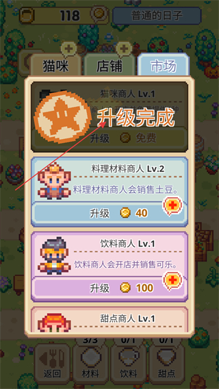 4、点击选择想要的食材商人进行升级,让他在市场上开设店铺。