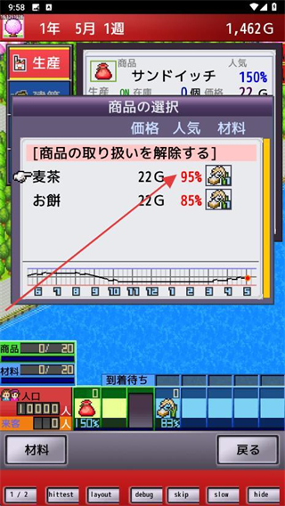4、在游戏主页下方可以看到每种商品的当前仓库余额数量,进行及时补货。