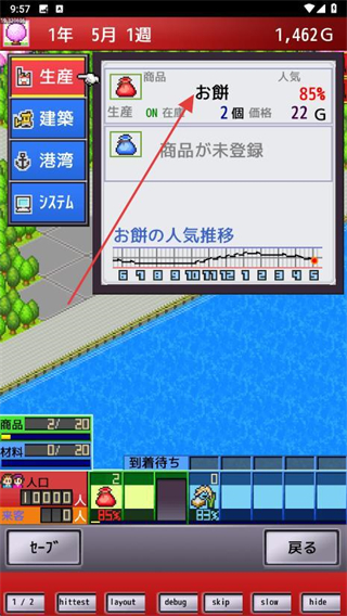 1、点击右下角菜单按钮进入港口的信息设置界面,进行港口商品的选择。