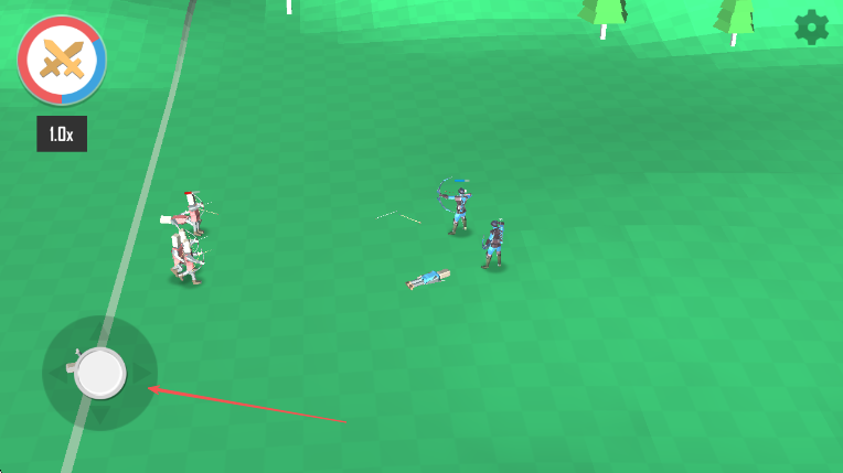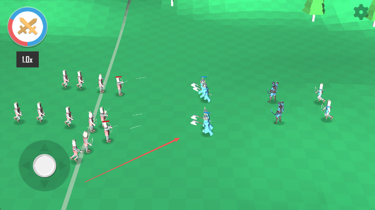 2、战斗开始,通过屏幕左侧虚拟摇杆操控己方部队,按箭头方向进攻敌方部队。