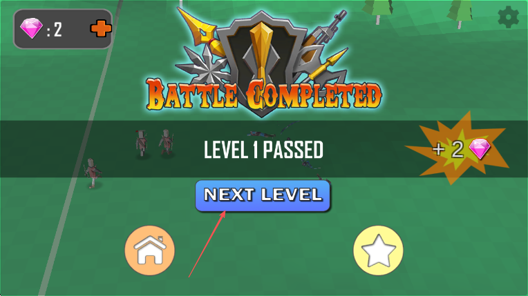 4、成功击败敌方部队后,点击箭头所指的NEXTLEVEL按钮,进入下一关。