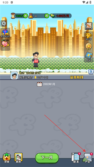 1、点击界面右下角的产业按钮进入产业管理地图界面,可查看持有产业如快餐店、奶茶店及待购产业的月度营收情况。