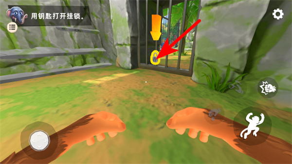 3、紧跟红色箭头指引,拾取场景中的钥匙道具,借助钥匙解锁铁门上的锁链,推进任务进度。