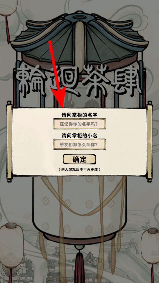 1、进入游戏先设置请问掌柜的名字和请问掌柜的小名,填写好后点击确定,进入游戏后不可更改。