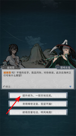 3、与NPC对话时,选择符合自身发展方向的选项如提升修为,并获得对应奖励,选择时需考虑角色的成长规划。