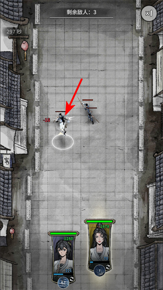 4、战斗场景中,点击角色可操控其移动和攻击敌人,战斗关注剩余敌人数量角色血量,确保顺利击败所有敌人。