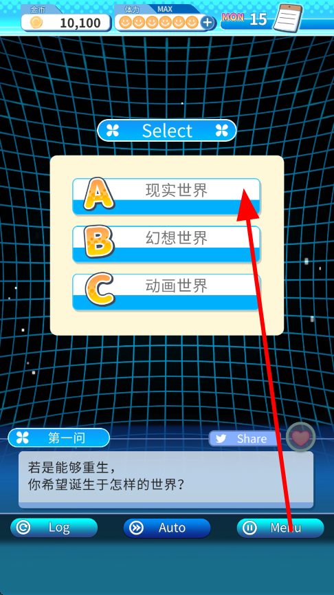 2、会有现实世界、幻想世界、动画世界等选项,玩家可根据喜好选择诞生的世界,不同世界会带来不同的剧情发展。