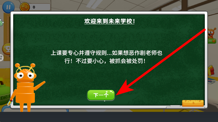 2、要遵守规则,进入游戏后,会有提示告知上课要专心并遵守规则,若想恶作剧老师也可行,但要小心被抓会受处罚,需遵循这些规则开展行为。