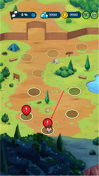 2、进入游戏地图界面后,点击带有红色感叹号标识的区域,操控角色前往该区域,即可推进游戏的任务流程。
