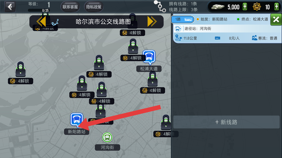 1、前期准备与设置:进入游戏后查看公交车详细参数,车型、经验加成清洁度等,点击模式设置起始站与终点站,无限勋章解锁所需站点,无需观看广告获取资源。