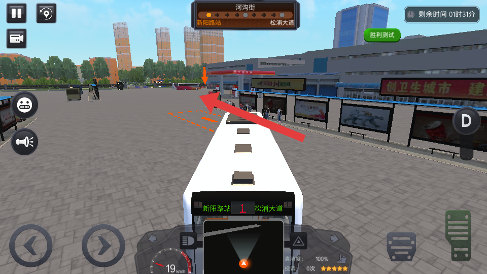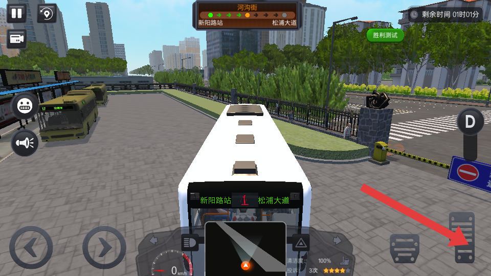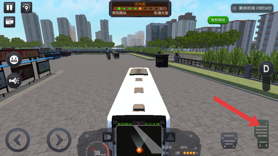 4、对公交进行操作时,点击箭头指向的右侧操作按钮,可触发相应功能,保障运营过程中的各项操作需求,推进游戏进程。