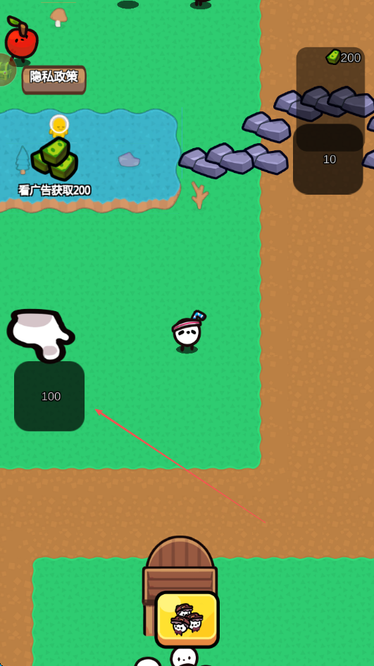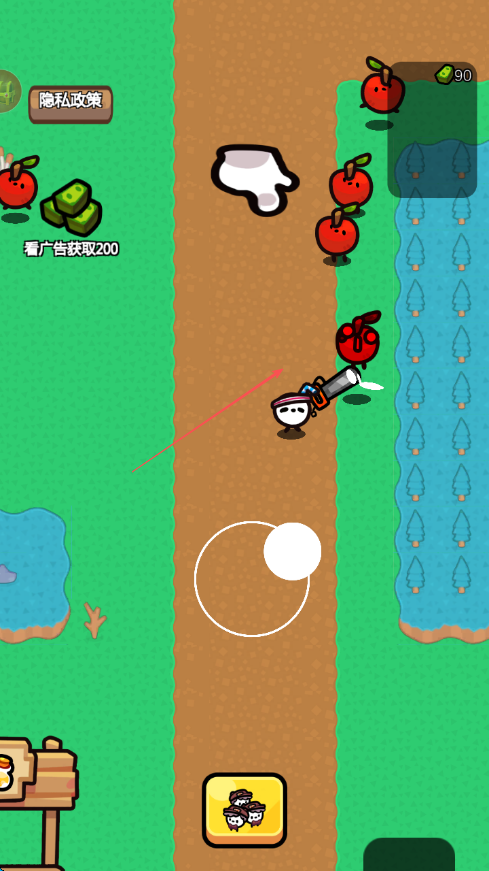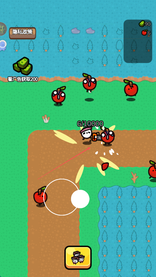 3、操控角色移动,靠近场景中的苹果等目标物,角色会自动攻击。