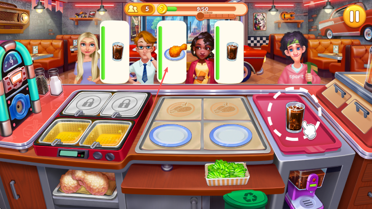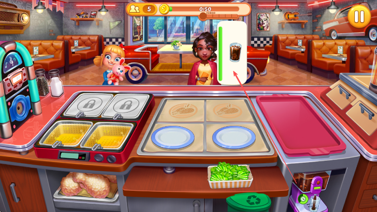 1、多独立餐厅解锁体系:设置七个风格与定位不同的独立餐厅,每个餐厅对应独特的顾客群体与食物品类,玩家需通过经营前一餐厅积累经验与资源,逐步解锁后续餐厅。