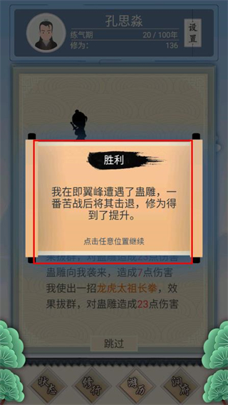 3、点击游历,进行战斗,结算事件,获得修为等属性提升。
